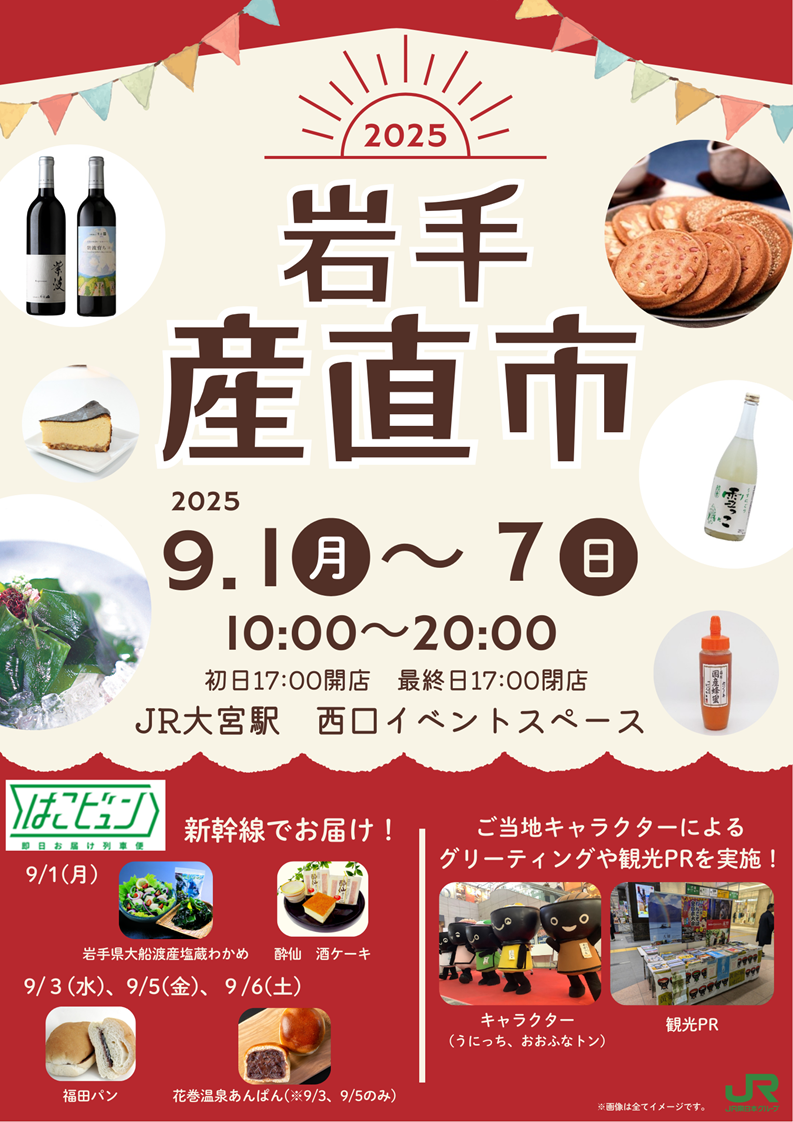 また、9月1日(月)~7日(日)の期間中は岩手産直市も開催されています。岩手県の地産品をお気軽に楽しめるこの機会に、ぜひお立ち寄りください!